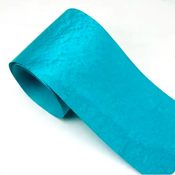 Each roll of Dyed Wood Veneer is carefully wrapped in plastic and then placed in a cardboard box for shipping. The box is then sealed with tape and labeled with the product name and destination.